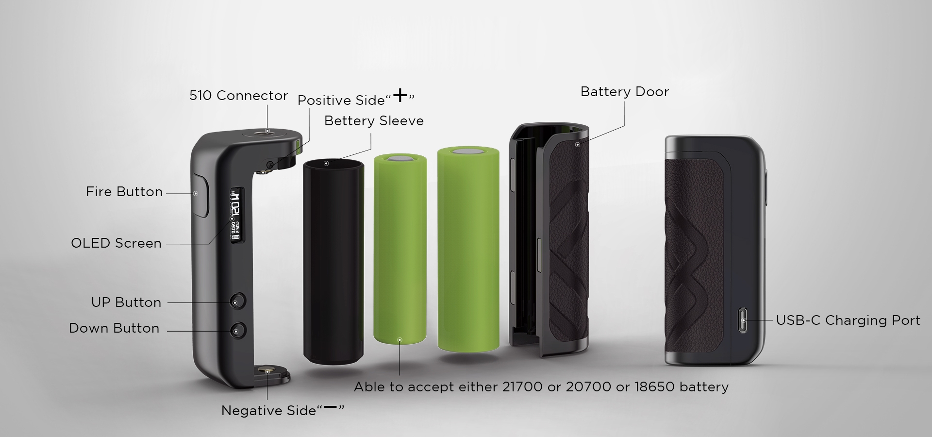 Augvape Foxy One Mod is inherited the aesthetics from DRUGA FOXY so it is very clean and modern looking, with soft curves androunded edges. lt is powered by a single 21700/20700/18650 battery and capable of firing up to 120W and made by zinc-aluminum alloy. And it comes with a large OLED Screen to display the vaping data.
