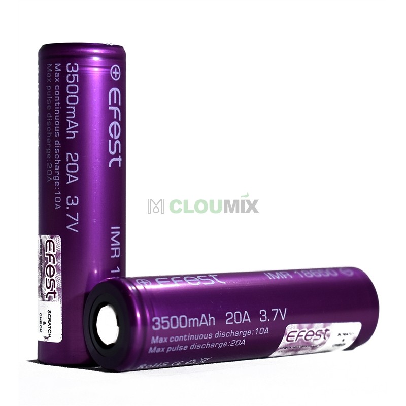 | Product Name: | Efest 18650 3500mAh Flat Top Purple 20A 3.7V IMR Battery |
