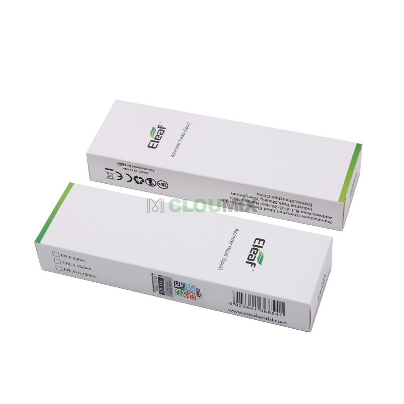 Eleaf ER 0.3ohm Head features single stainless steel 316 coil and supports VW, Bypass, Smart, TC-SS and TCR modes. Rated at 40-100W high wattage for cloud chasing. And comes with 100% organic cotton wick for pure . It can be used for Melo RT 22 Tank.