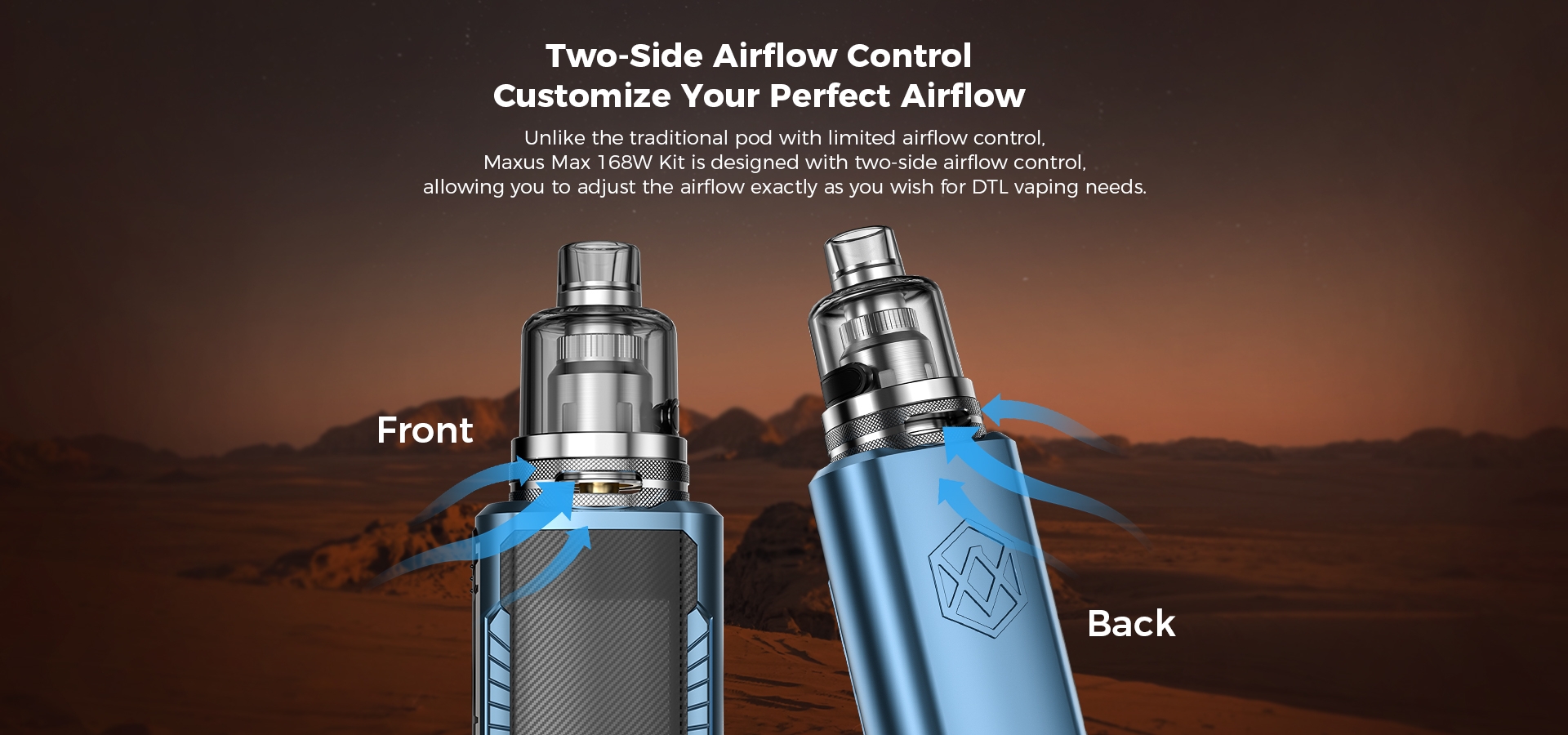 Freemax Maxus Max 168W Kit consists of Maxus DTL Pod and Maxus MAX 168W Mod, powered by dual 18650 batteries and charged with 2A Type-C USB. Maxus DTL Pod is made of food-grade PCTG material and can hold 5mL of . The innovative side-filling design makes the filling process easier without detaching the pod. Maxus Max 168W now comes with four MX Mesh Coils for various DTL vaping needs, and there's a wide range of MX Mesh Coils on the way. It is a revolutionary and compact dual battery pod mod that transplants the exact same structure of single/double/triple mesh coils of Mesh Pro Series and adopts industry-leading FM COILTECH4.0 mesh technology (Tea Fiber Cotton Formula & Military Grade Mesh Structure), which is widely recognized all over the world for refreshing s, massive clouds and coil longevity. For the first time, you can enjoy 100% original sub ohm vaping with World's First Double & Triple Mesh Coil in a pod mod.