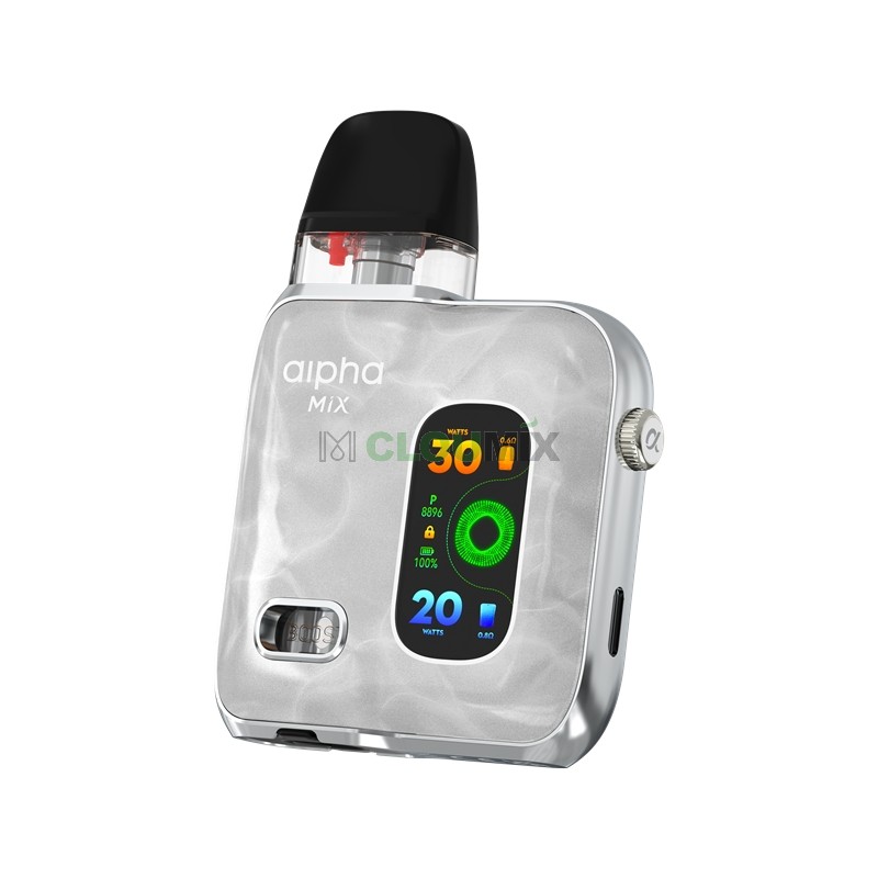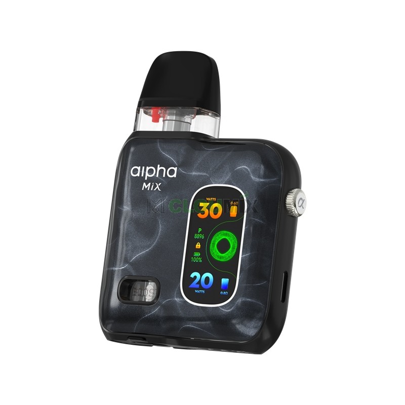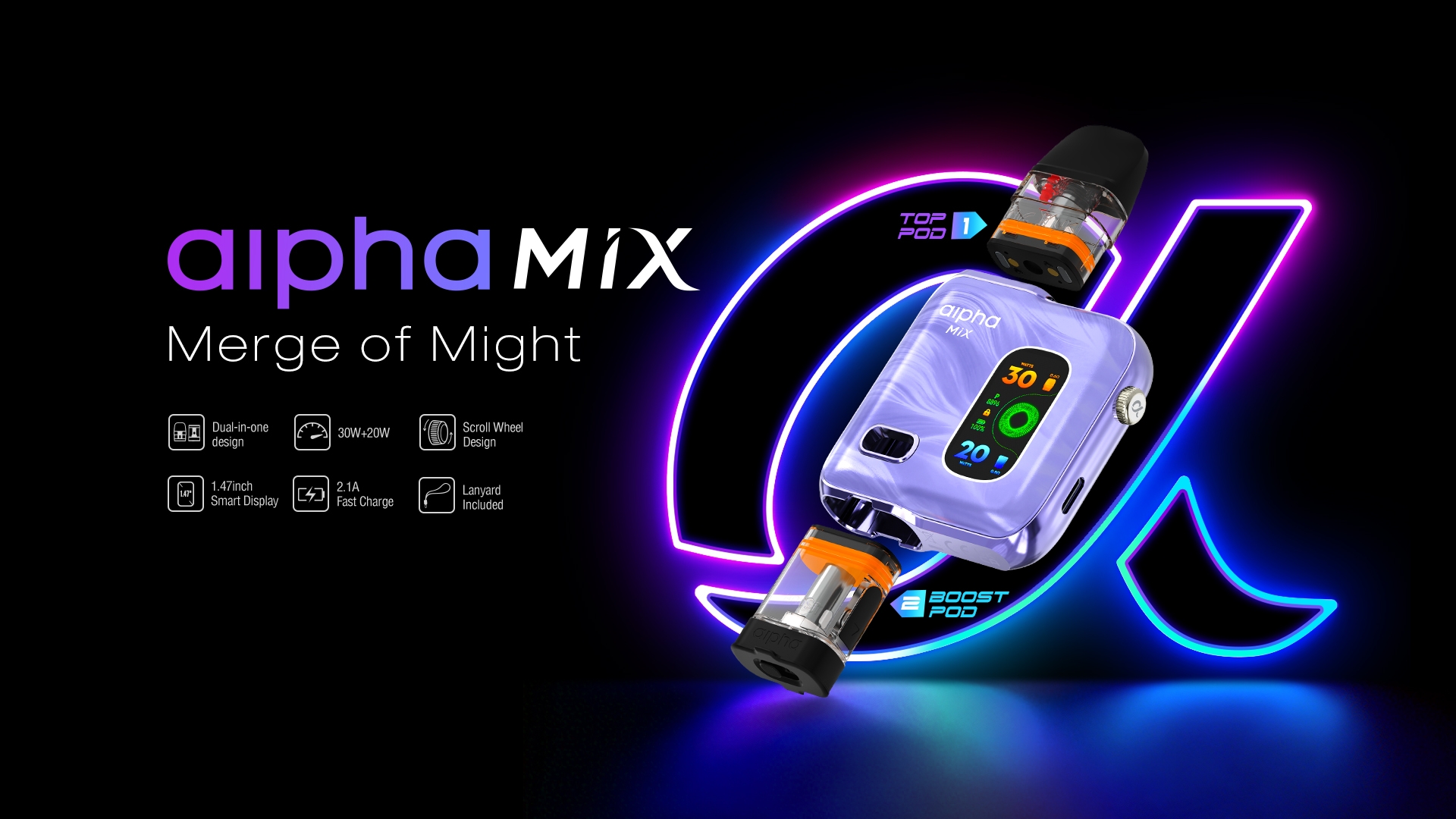 Smok Alpha Mix Kit is a versatile dual-in-one pod system kit newly launched by Smok. The Alpha Mix is powered by a 1300mAh battery with 5V/2.1A fast charging, which ensures extended vaping experience. The kit delivers 50W max output (top pod 30W max + boost pod 20W max), providing you powerful and consistent vapor production. Its dual-in-one design combines convenience and flexibility, while the 360° rotary scroll wheel allows intuitive control over settings. Designed with a 1.47-inch smart display, it shows vaping information in real time, complete with three themes and dynamic animations for a personalized experience. Besides, it supports two filling styles, making refills easier, and comes with a lanyard included for effortless portability.