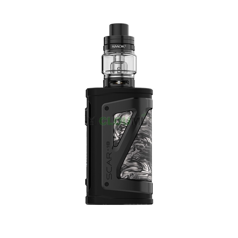 Smok SCAR-18 Kit is powered by dual 18650 cells with max 230w power output.The scar-18 mod features control panel with intuitive trigger buttons and color display. The TFV9 Tank holds 5ml e capacity with top filling design.