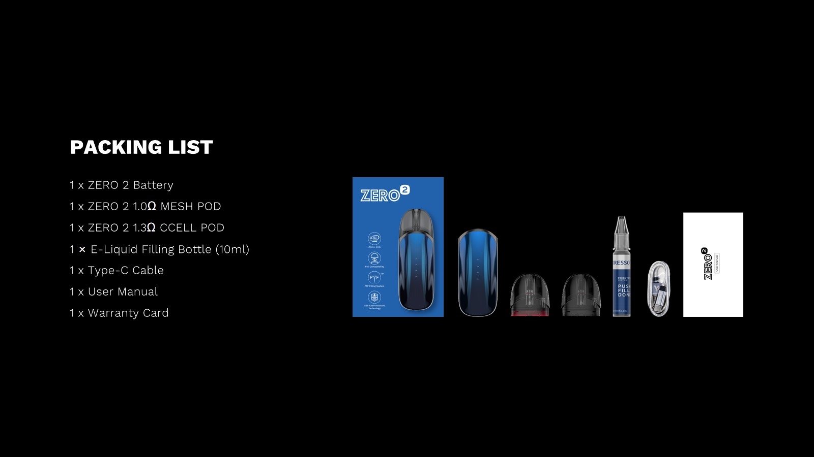 The Package of Vaporesso ZERO 2 Kit 3ml Includes