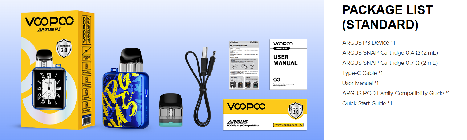 The Package of VOOPOO ARGUS P3 Kit Includes