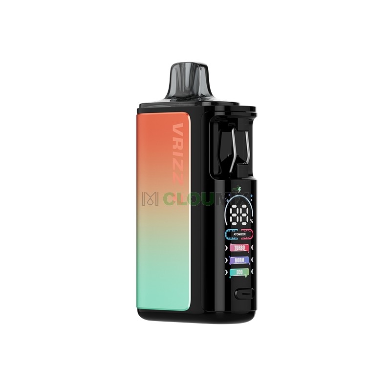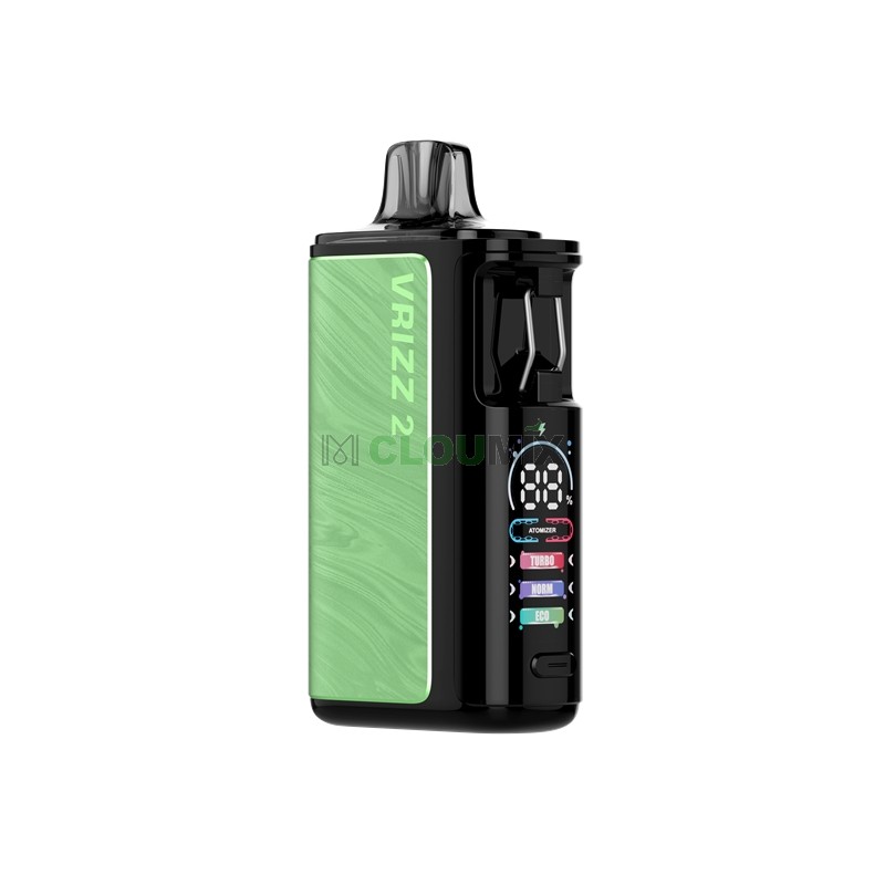 VOOPOO Vrizz 2 Kit is an upgraded kit launched by VOOPOO. The Vrizz 2 is powered by a high-density 1350mAh battery with 30w max output power and Type-C charging. What's more, it comes with a switchable button, supporting one-touch switch for three modes: TURBO / NORM / ECO. Besides, the kit is compatible with Vrizz Cartridge V2 that features an unbeatable 15ml capacity - which is the world's largest pod capacity, it offers 80k puffs each one refilling and takes you away from frequent refill.